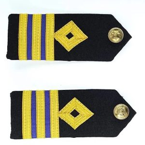 Hard Epaulettes | Uniform Accessory | Professional Emblem | Sturdy & Washable 3 Gold Strip With Loop Shoulder Insignia For Merchant Navy Chief Officer |Set 1